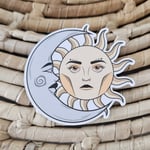 Moon and sun sticker. Place this sticker on your water bottle, coffee mug, laptop or anywhere you want a little decoration.