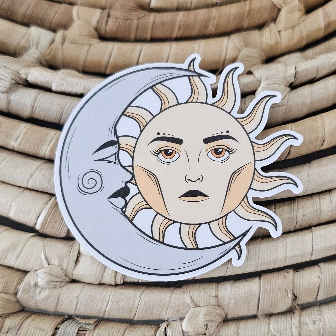 Boho sun and moon sticker, sticker for water bottle, water resistant sticker