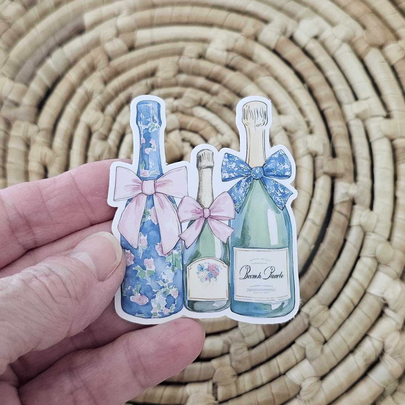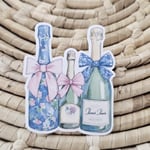 Chinoiserie champagne bottle sticker with bows. Place this sticker on your water bottle, coffee mug, laptop, car or anywhere you want a little decoration.