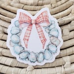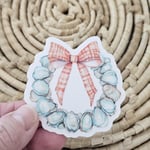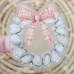 Clear oyster shell wreath sticker with gingham bow, beach decal, summer sticker