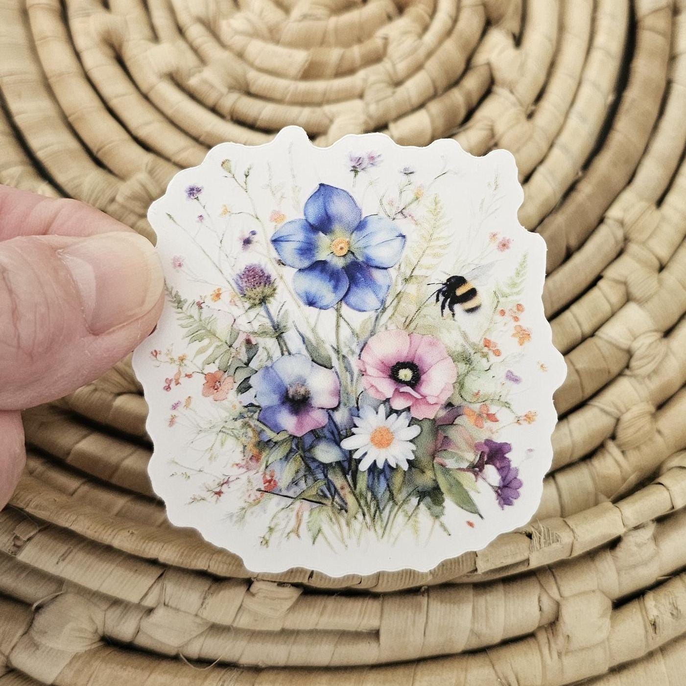 Adorable clear floral sticker with bee. Printed on high quality permanent sticker paper. Place sticker on your water bottle, laptop, or journal.