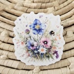 Flower sticker with bee, floral decal, laptop sticker, clear sticker