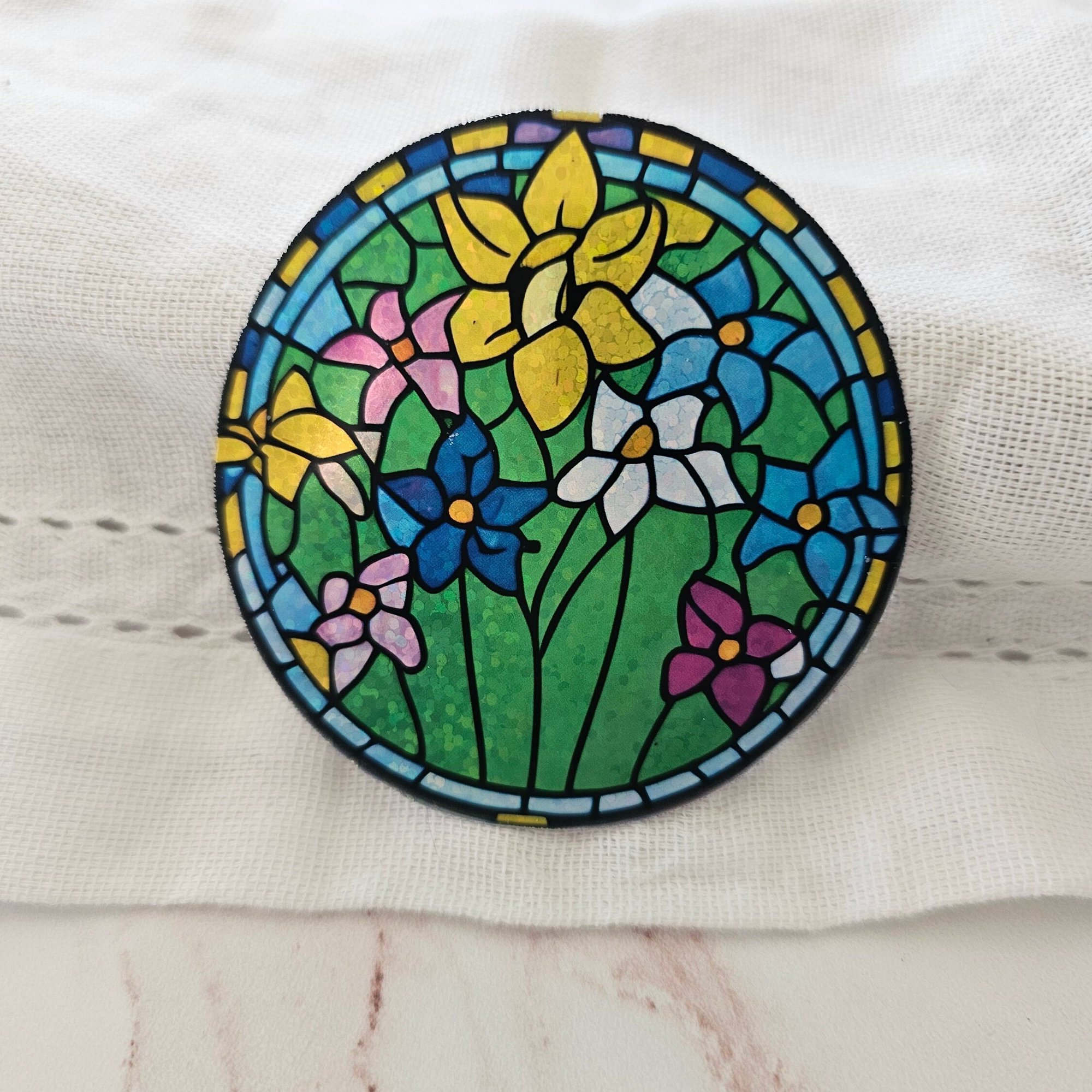 Holographic stained glass flower sticker. Printed on holographic sticker paper. Perfect for your laptop, water bottle, or journal.