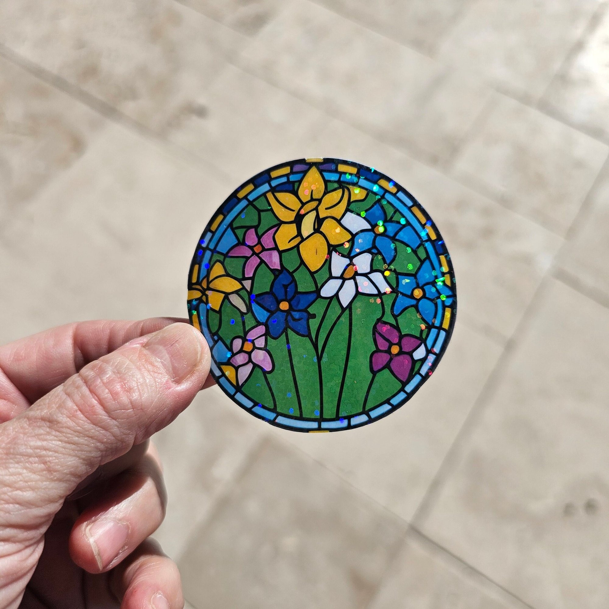 Glitter stained glass flower sticker, laptop decal, sticker for water bottle