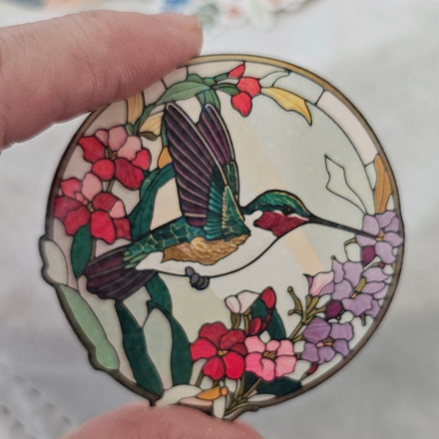 Holographic stained glass hummingbird sticker, laptop decal, sticker for water bottle