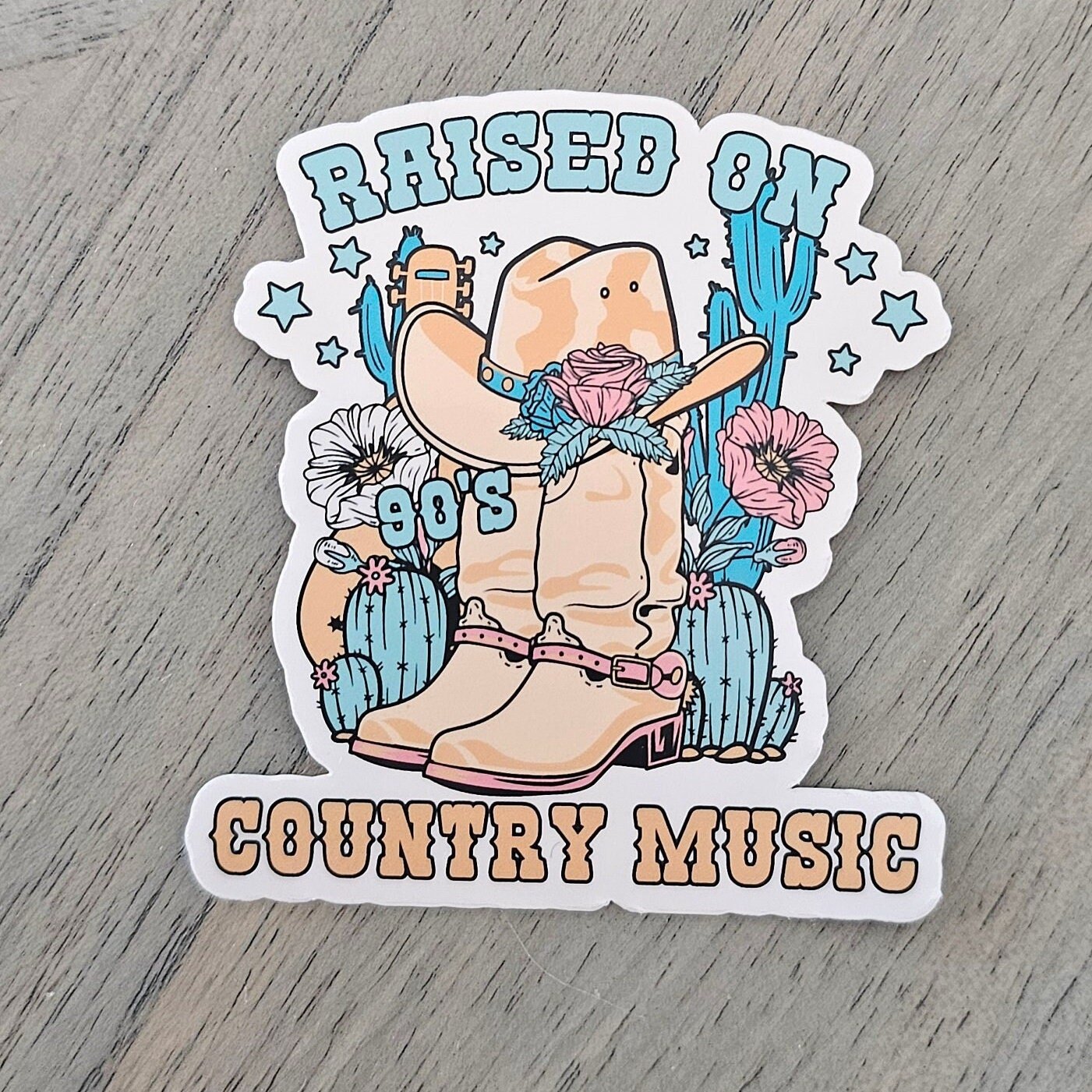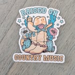 Raised on country music sticker. Place on waterbottle, journal, or planner.