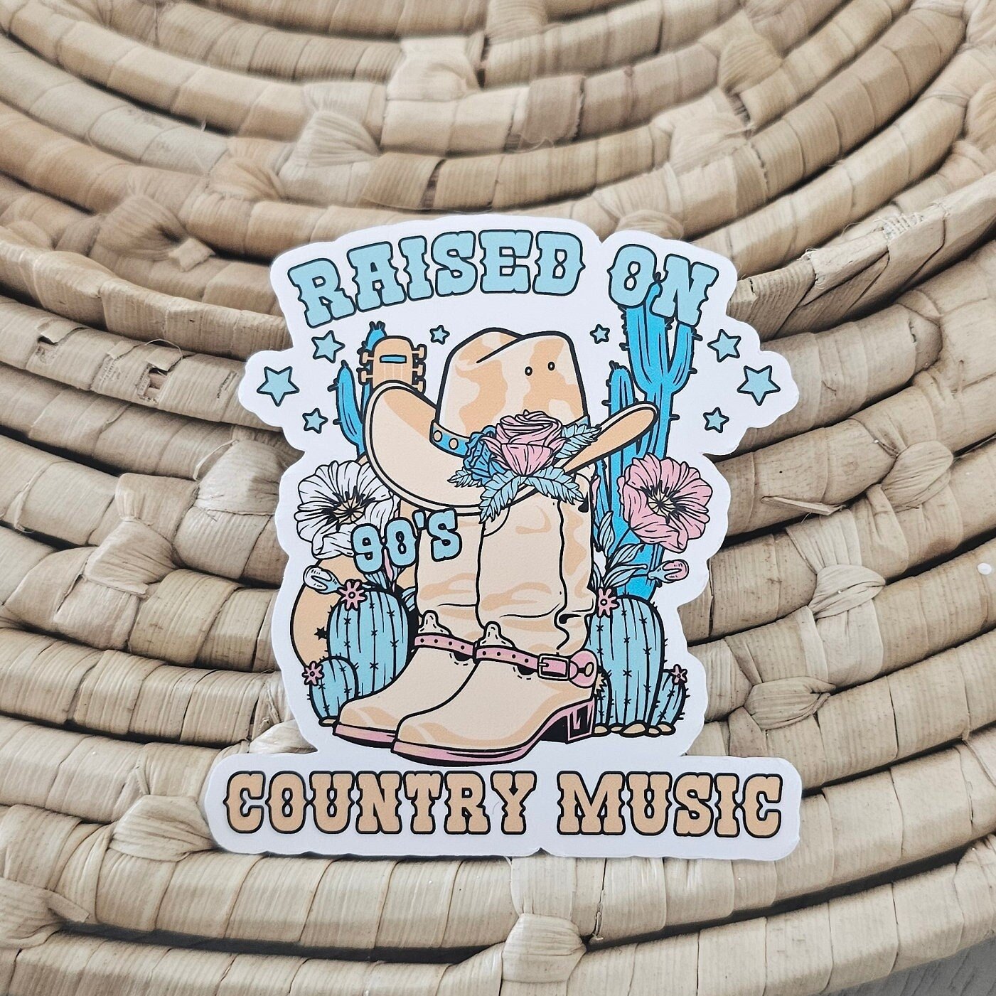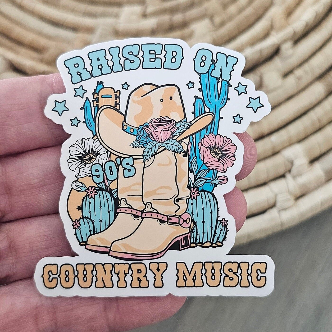 Raised on country music, quote sticker, laptop decal, music sticker, glossy sticker, uv laminate