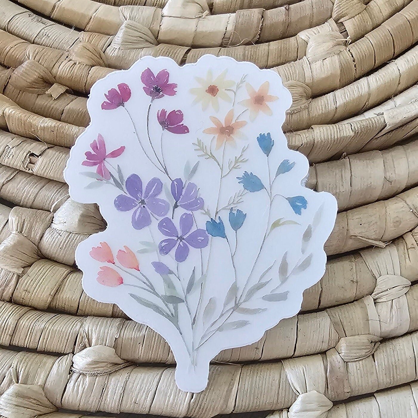 Beautiful wildflower bunch sticker printed on clear vinyl sticker paper. Place this sticker on your water bottle, coffee mug, laptop, car or anywhere you want a little decoration.